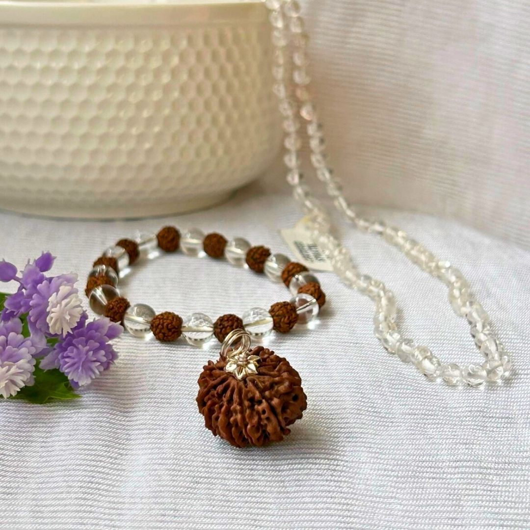- Quartz & Rudraksha Bracelet